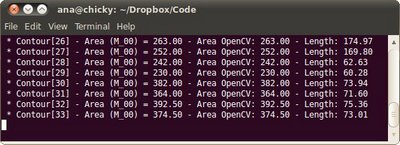 System.out.format(" * Contour[%d] - Area (M_00) = %.2f - Area OpenCV: %.2f - Length: %.2f\n", i,