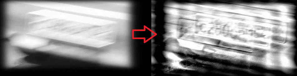 \(SNR\)、\(LEN\) 和 \(THETA\) 的值是手動選擇的,以獲得最佳的視覺效果。\(THETA\) 引數與汽車的移動方向一致,而 \(LEN\) 引數取決於汽車的移動速度。結果並非完美,但至少它為我們提供了影像內容的線索。經過一些努力,現在車牌可以識別了。