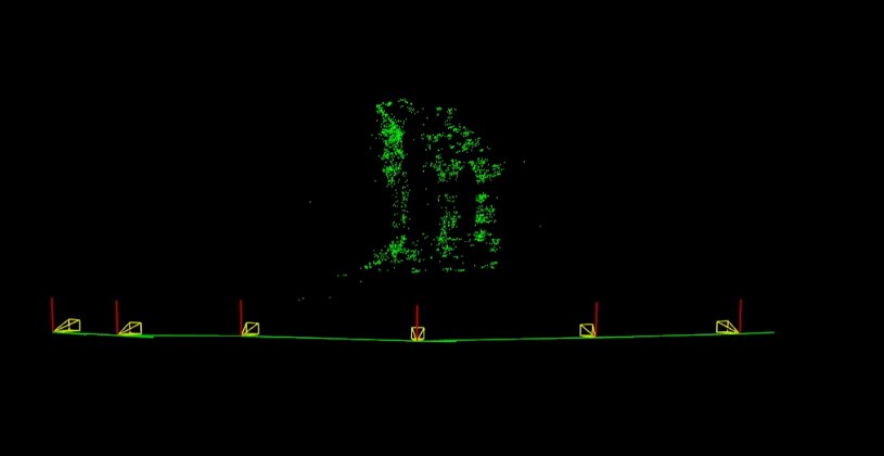 下圖顯示了獲得的相機運動以及估計的稀疏 3d 重建