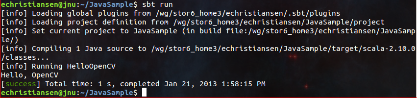 接下來,導航到一個新目錄,您希望應用程式原始碼位於該目錄中(在 opencv 目錄之外)。我們稱之為“JavaSample”併為其建立一個目錄