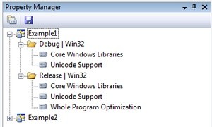 每個專案都與其他專案分開構建。 因此,每個專案都有自己的規則包。 在此規則包中儲存了 IDE 需要知道的所有資訊才能構建您的專案。 對於任何應用程式,至少有兩種構建模式:Release 和 Debug。 Debug 具有許多功能,這些功能的存在是為了您可以更輕鬆地在應用程式中查詢和解決錯誤。 相比之下,Release 是一個最佳化版本,其目標是使應用程式執行得儘可能快或儘可能小。 您可能會發現這些模式還需要在構建期間使用不同的規則。 因此,每種構建模式都存在不同的規則包。 這些規則包在 IDE 中稱為專案屬性,您可以透過使用屬性管理器來檢視和修改它們。 您可以透過“檢視”–>“屬性頁”來調出它(對於 Visual Studio 2013 及更高版本,請轉到“檢視”–>“其他視窗”–>“屬性管理器”)。 展開它,您可以看到現有的規則包(稱為屬性表)。